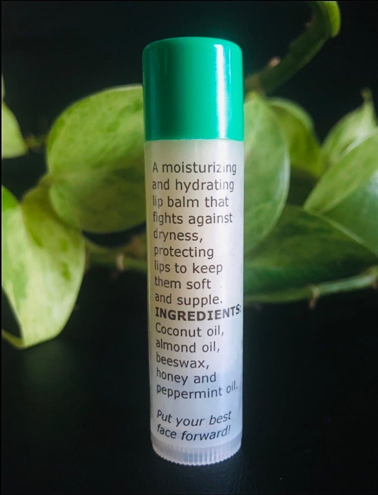 Coconut oil, almond oil, beeswax, honey and peppermint oil.